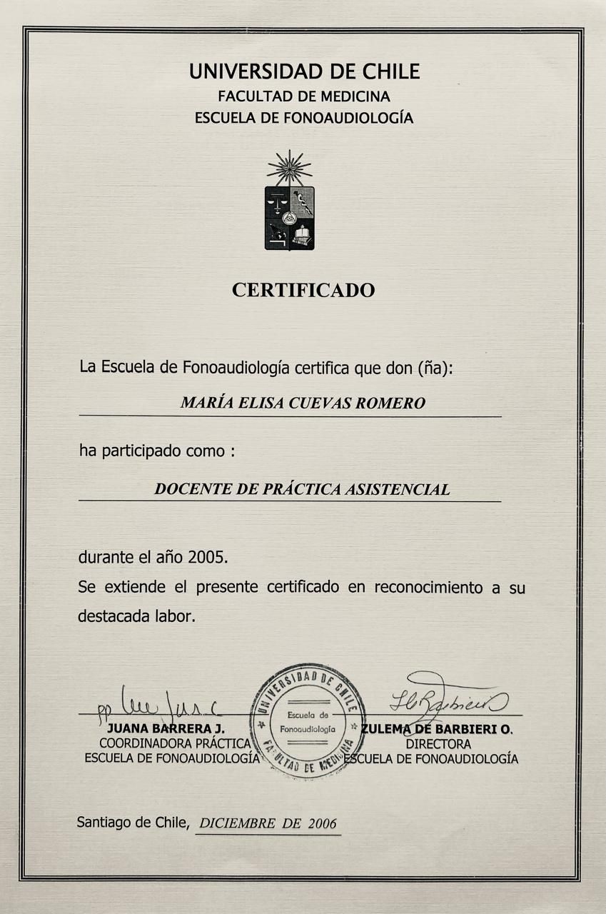 Soy docente Clínica en carrera de Fonoaudiología desde año 2001(Universidad de Chile, Universidad San Sebastián, Universidad Mayor), desempeño que me mantiene en constante capacitación para la formación efectiva, integral y actualizada de mis estudiantes futuros Fonoaudiólogos.