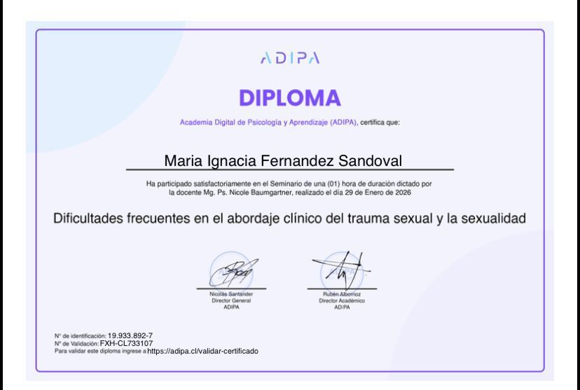 A lo largo de mi experiencia profesional he trabajado en atención clínica e intervención psicosocial, especialmente con adolescentes, abordando temáticas como ansiedad, dificultades emocionales, conflictos familiares, autoestima, procesos de identidad, regulación emocional y momentos de crisis. Este trabajo me ha permitido comprender profundamente los desafíos propios de esta etapa de la vida y la importancia de generar un espacio seguro donde los jóvenes puedan expresarse y sentirse comprendidos.