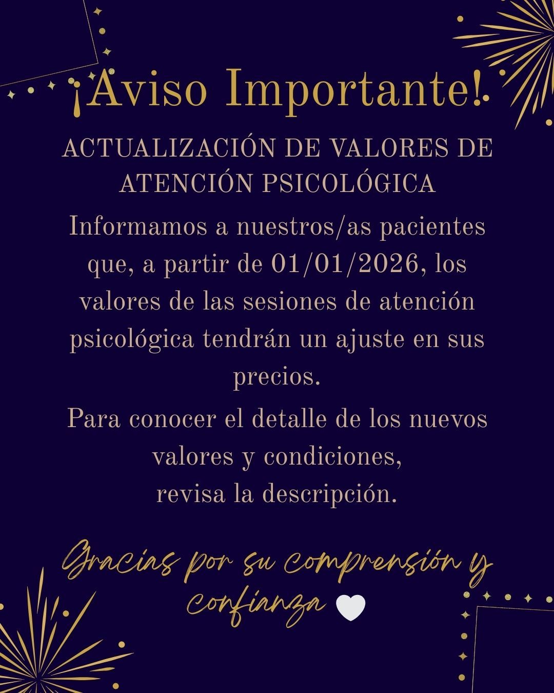 Les escribo para informarles con anticipación que, a partir del próximo año, se realizará una actualización en los valores de la atención psicológica.