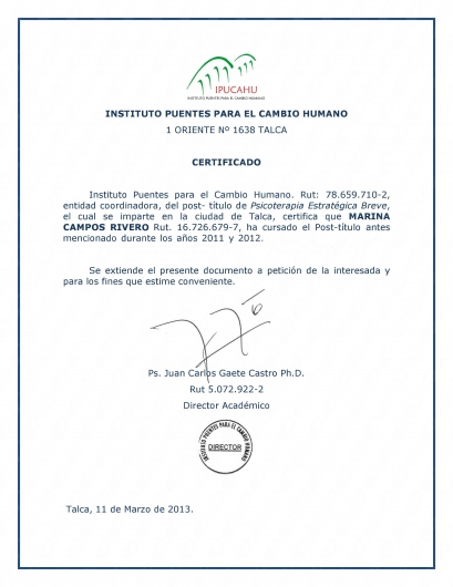 Profesional responsable y comprometida, ciñéndose a los valores éticos inherentes al ejercicio de la profesión. Capacitada para aplicar conocimientos generales y específicos en el diseño y desarrollo de procesos de diagnostico, evaluación e intervención psicosocial, así como en el diseño y realización de programas de prevención, promoción, tratamiento, reparación y rehabilitación de la salud mental.