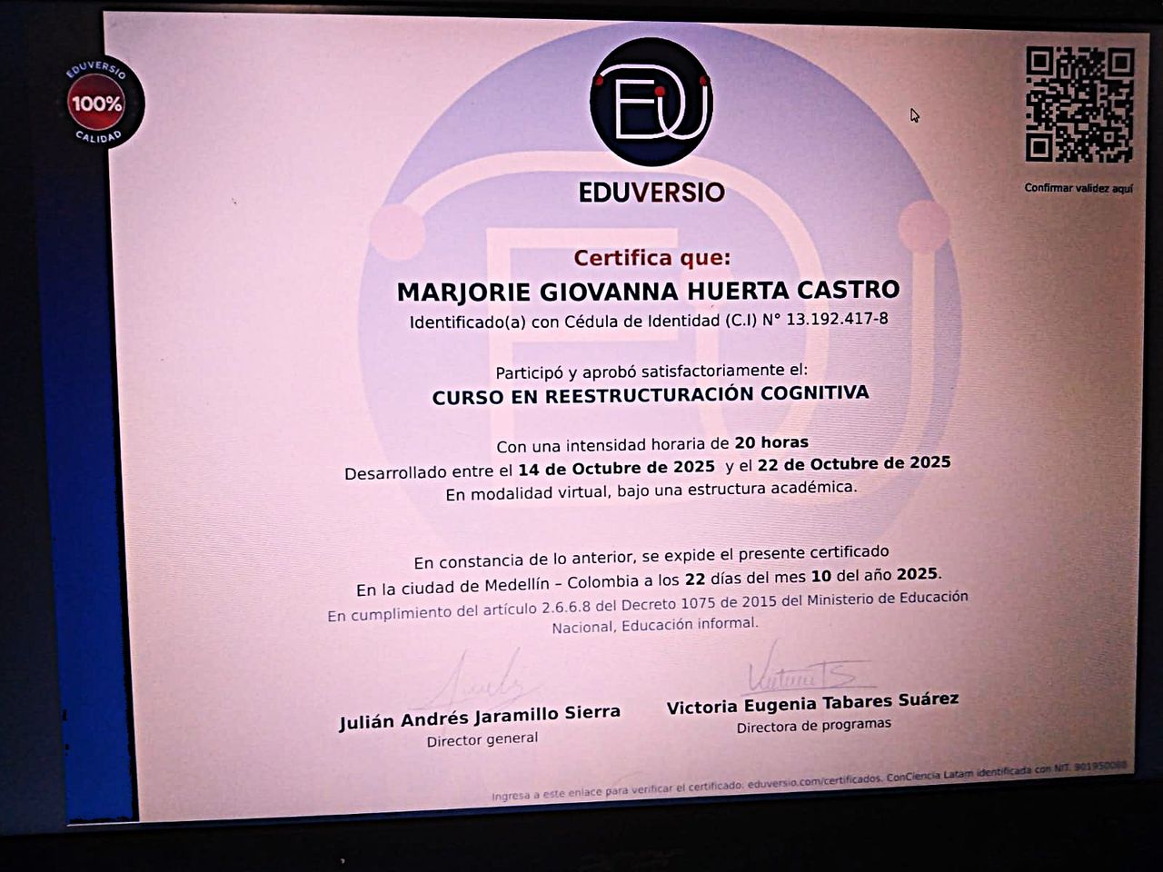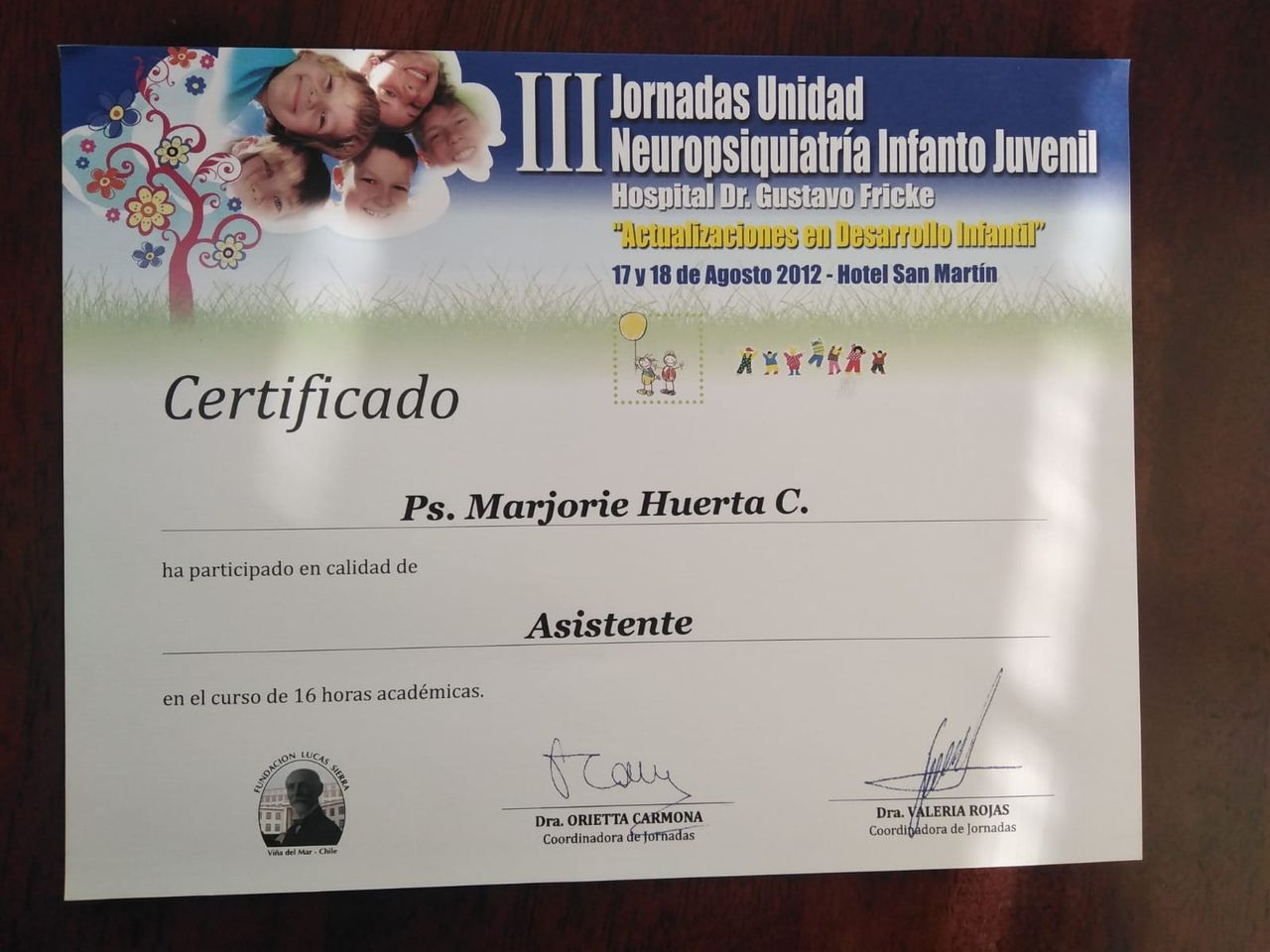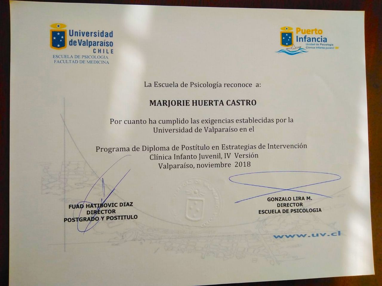 Buen día, soy Marjorie Huerta Castro, psicóloga titulada de la Universidad de Valparaíso. Cuento con 18 años de experiencia laboral, dedicados tanto al área clínica como en población infanto-Juvenil y adultos, a través de la terapia Cognitivo conductual y Experiencial he podido ayudar a varios pacientes a recuperar su salud mental y brillo interior. También, cuento con experiencia en el área laboral, principalmente en salud pre-ocupacional, evaluando a través de test psicológicos a profesionales del área pública y privada. En la terapia individual me especializo en trastornos de ansiedad (estrés), trastornos emocionales (depresión, anhedonia), trastornos adaptativos como: rupturas amorosas, divorcio, duelo, o problemas de adaptación a enfermedad físicas como: diabetes, entre tantas; además, problemas de autoestima, bullying, abuso psicológico y/o físico en la mujer. Me considero una profesional comprometida en el proceso terapéutico de cada individuo, respetando sus tiempos, guiando el autodescubrimiento y crecimiento personal en cada paciente. Ofrezco un espacio de escucha segura y activa, potenciando la introspección y detección de pensamientos y creencias problemáticas que dificultan tu forma de sentir y de actuar y que al mismo tiempo pueden oscurecer tu luz interior.