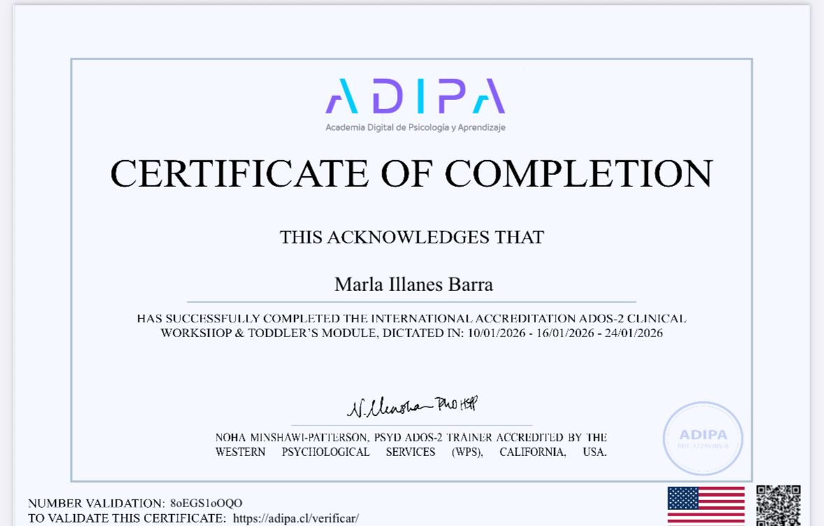 Marla es muy agradable y atenta durante la atención, las sesiones son muy enriquecedoras y entrega muchas certezas y seguridad, ayuda a sentirte validado y comprendido.