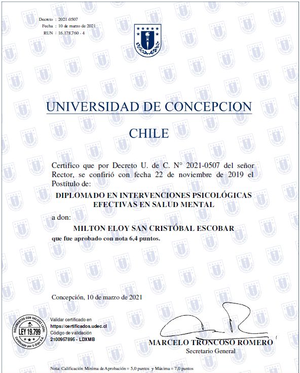 Atenderme con Milton ha sido una muy buena decisión, es un profesional muy atento, empático y está dispuesto a ayudarte. Era primera vez que probaba la terapia de hipnosis y Milton fue capaz de entregarme confianza y seguridad, además de derribar varios prejuicios que uno tiene sibre la terapia de hipnosis. Explicando y entregando información sobre esta. Fue una experiencia sanadora y enriquecedora que me ayudo a superar mis problemas con la ansiedad.