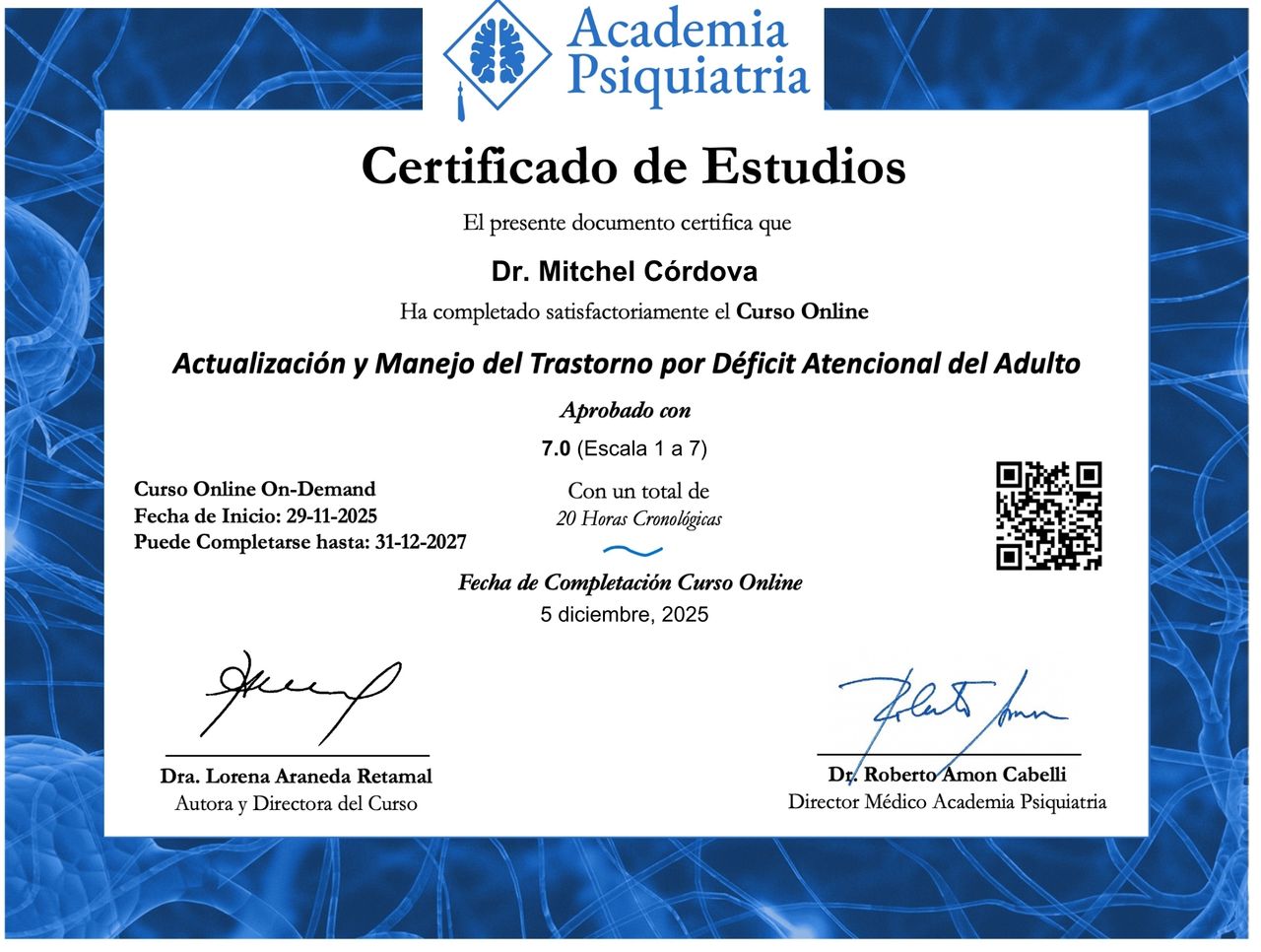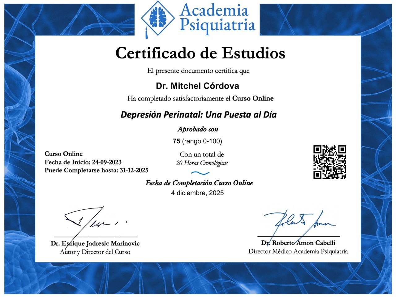 Psiquiatra muy empatico,responsablemente ,comprometido y profesional con paciente muy certero en su tratamiento muy agradecida de su atención