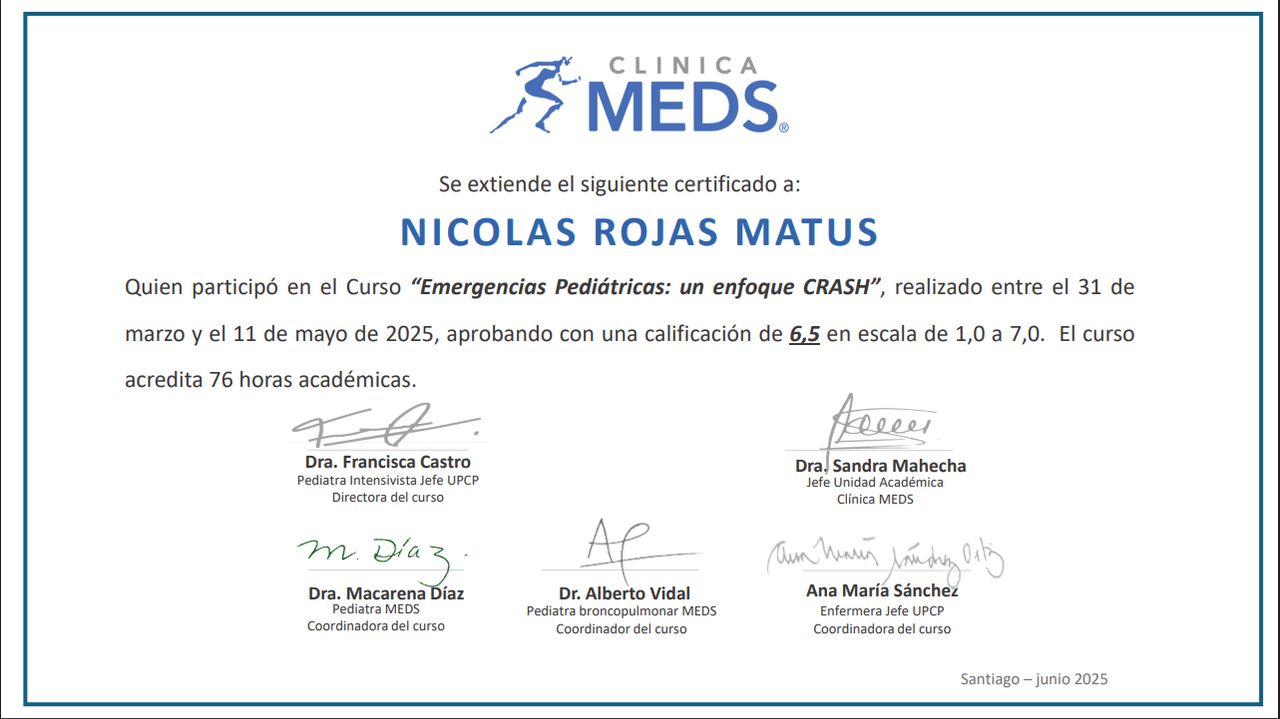 Hola! Soy Nicolás Rojas médico cirujano con enfoque en control de patologías crónicas asi como tratamiento de patologías agudas. Más adelante detallo áreas de trabajo.