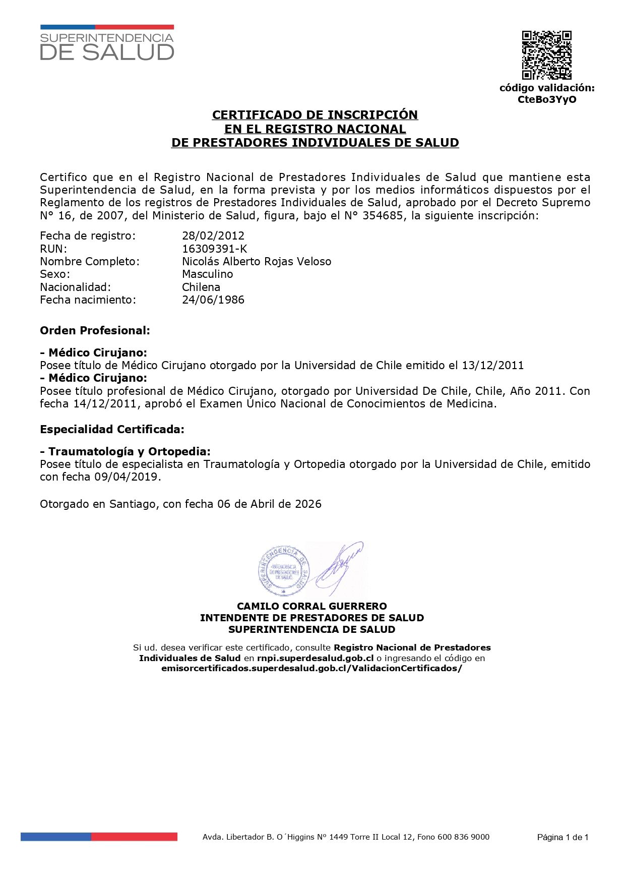 Soy el Dr. Nicolás Rojas Veloso, soy Médico Cirujano de la Universidad de Chile.