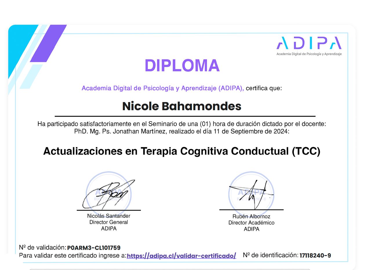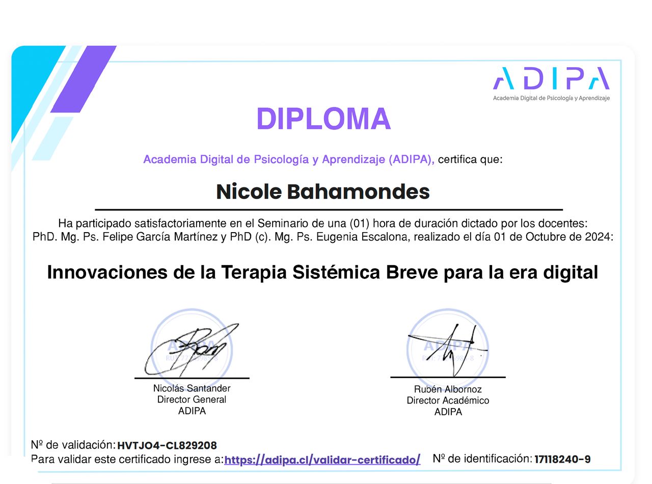 Mi experiencia con Nico ha sido maravillosa. Desde el principio me hizo sentir escuchada, en un espacio seguro y de respeto. A lo largo del proceso me ha entregado distintas herramientas que he podido aplicar en mi día a día para gestionar mejor mi ansiedad y conectar con mis propósitos. Gracias a su acompañamiento he podido observar cambios positivos y reales en mi bienestar.