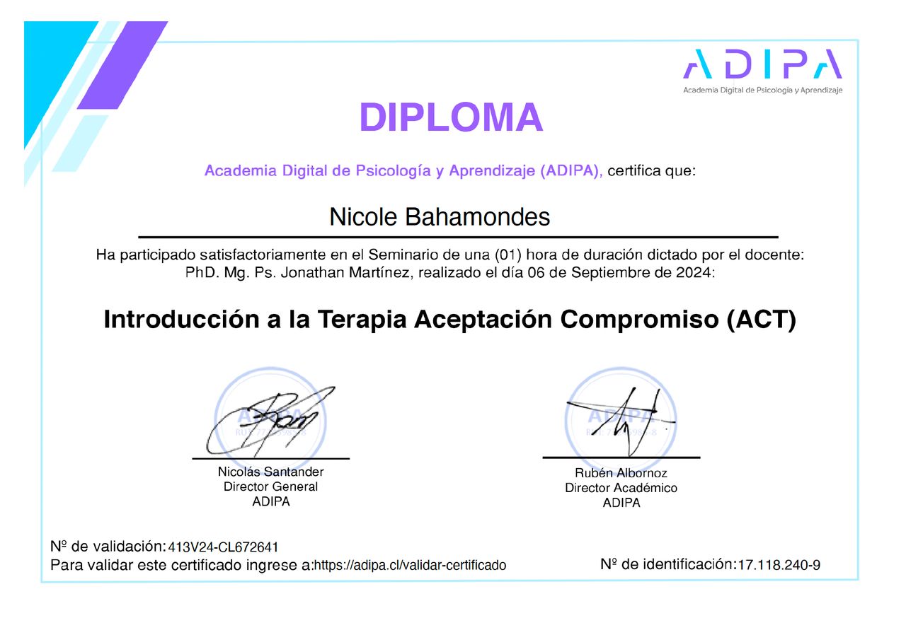 Trabajo desde un enfoque de salud integral, con especial énfasis en la Terapia de Aceptación y Compromiso (ACT), ayudando a las personas a regular sus emociones, relacionarse de manera más amable con sus pensamientos y construir una vida con mayor sentido, coherente con sus valores. Experiencia y especializada en ansiedad, regulación emocional, autoestima, alimentación consciente (mindful eating), hábitos saludables y vínculos afectivos.