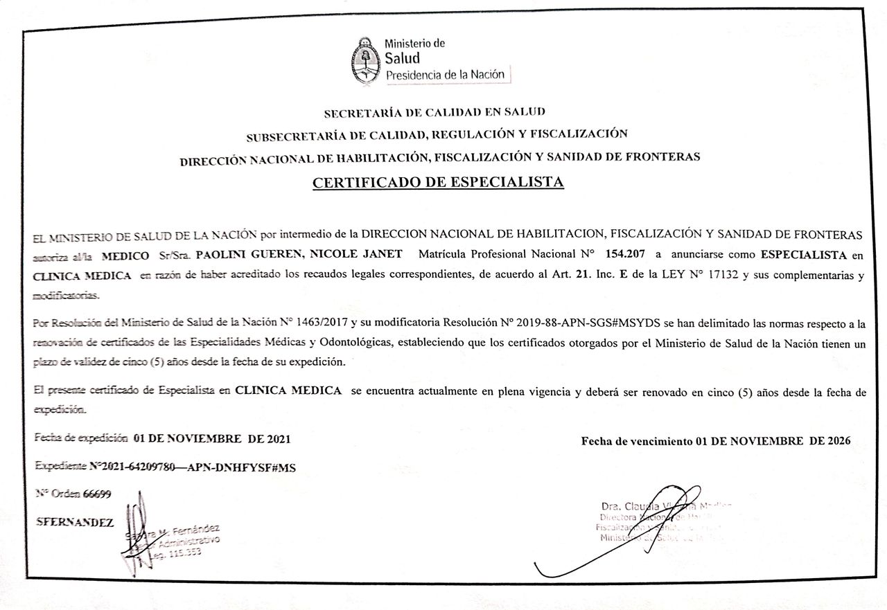 Núm. Colegiado: 693543 Medico general / Sin registro en Conacem Medicina Interna