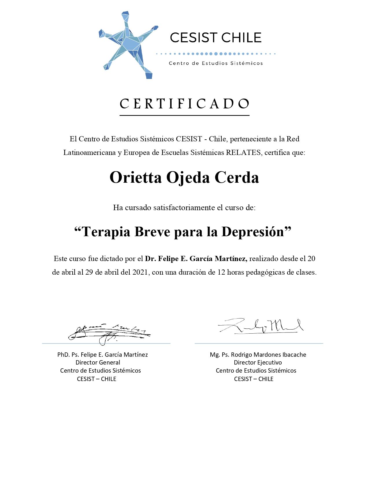 Estoy certificada en Terapia Sistémica Breve, Duelo, Trastornos de Ansiedad, Estrés y Burnout, Terapia Breve del Trauma, PNL y Psicología Positiva.