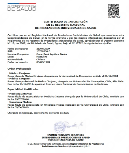 Un Médico de otro planeta, cordial, empatico, dedicado al problema de su paciente, sencillo, muy asertivo en sus apreciaciones de contro médico. Un GRANDE,dentro de la parte oncologica. Hablar de El, podría estar un día refiriéndome a su persona. Realmente como médico, lo amo. Me atiende en el CON, de Antofagasta.
