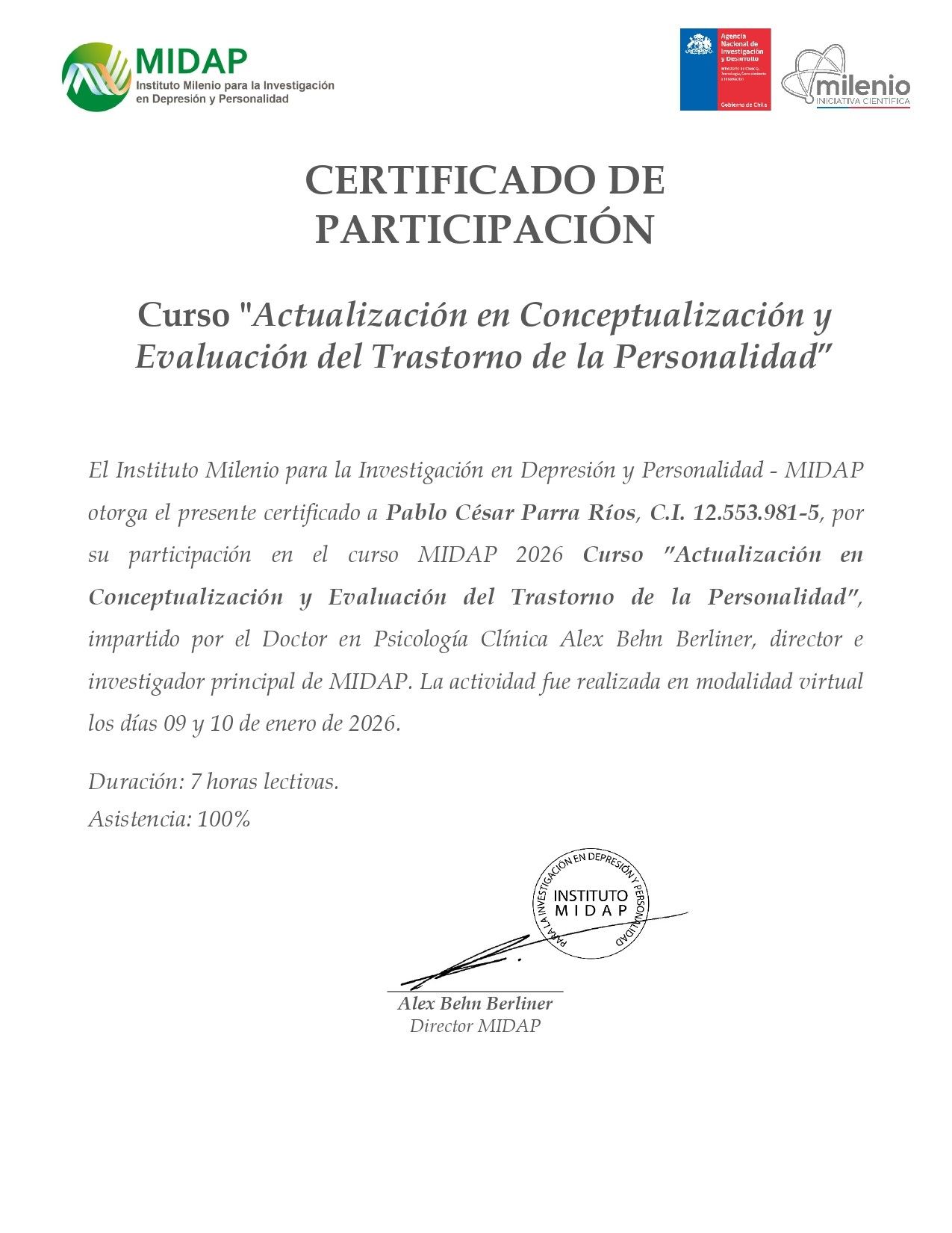 Encuentro que el terapeuta pablo es dedicado en su trabajo, explica de forma detallada y lógica la condición que padece el paciente, encontrando respuesta rápidas y dando soluciones a medida que se desarrolla la consulta, dando tranquilidad y esperanza y una ayuda certera al problema, excelente en sus respuestas y buscando constantemente aprender más para mejorar en su trabajo.