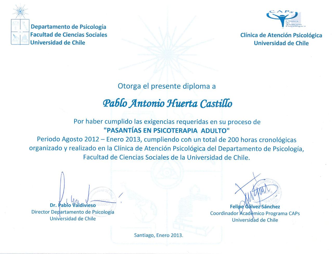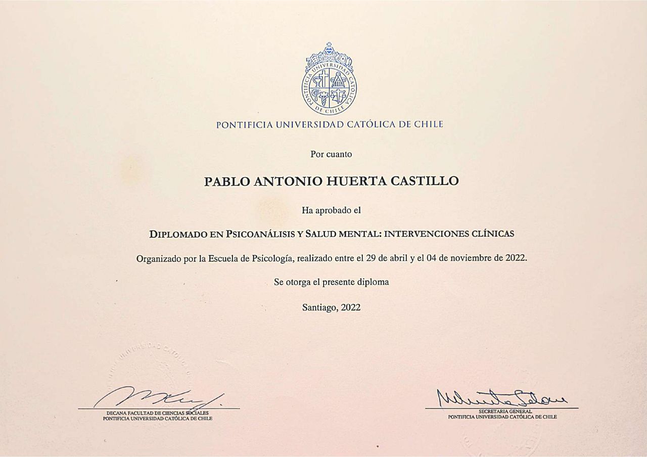 Psicólogo clínico de la Pontificia Universidad Católica de Chile.