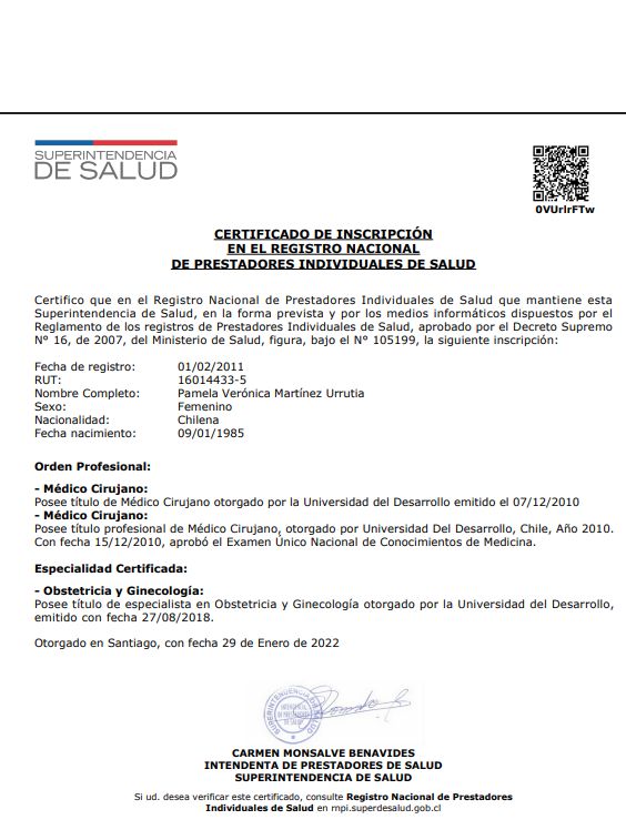 Soy Ginecóloga y Obstetra desde el año 2018, aunque mi especialidad la realicé en programa de especialización en conjunto con atención primaria de salud, por lo que atiendo ginecología desde el 2012, y tengo amplios conocimientos en área de prevención y promoción de salud, además de los fundamentales de la especialidad, con especial enfoque en problemas relacionados con la subfertilidad, climaterio-menopausia y orientación en patología mamaría general.