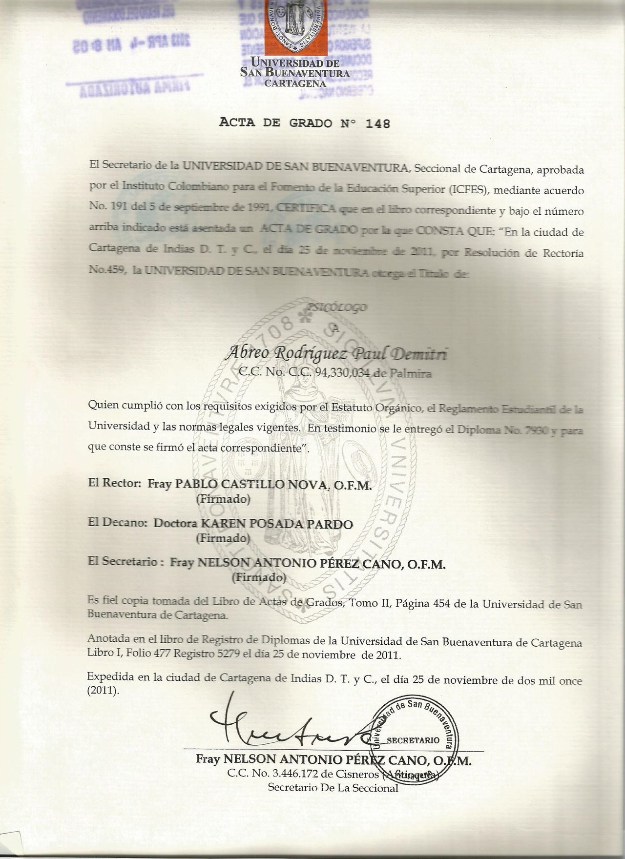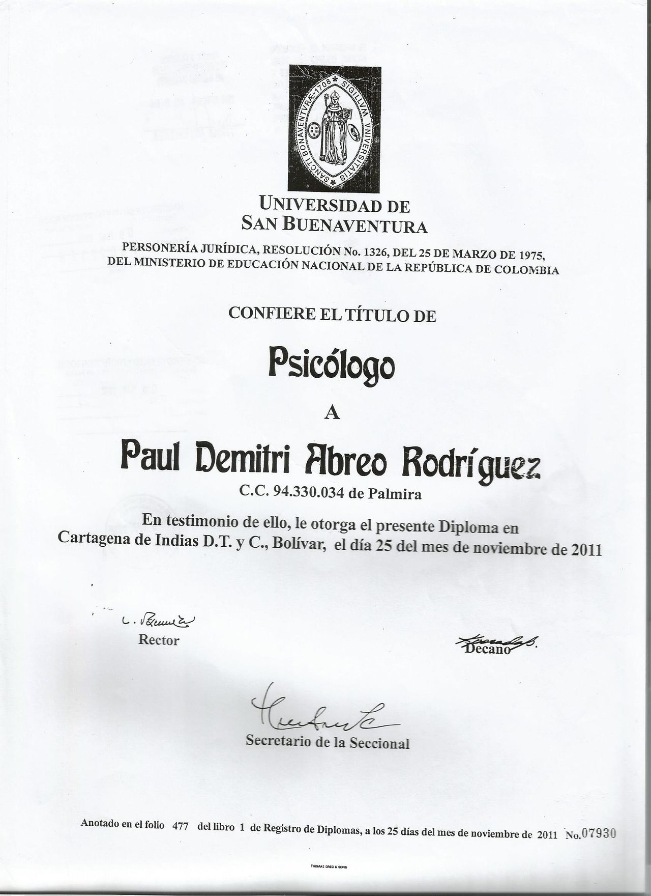 Mi nombre es Paul Demitri Abreo R. Psicólogo clínico. Considero que me caracterizo por generar siempre un ambiente de confianza y calidez en busca de la comprensión y buen juicio de las diferentes situaciones que atiendo. Me enfoco en que las personas que realicen sus procesos de intervención conmigo obtengan los resultados esperados y lograr culminar etapas de sanación donde cada quien sienta que alcanzo sus objetivos y experimente sus capacidades y potencialidades al máximo optimizando su calidad de vida.