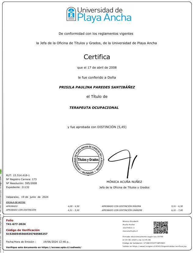 Terapeuta Ocupacional con experiencia en el ámbito de la salud pública y comunitaria, especializada en salud mental, neurodiversidad y rehabilitación funcional a lo largo del ciclo vital. Actualmente me desempeño en el área de Neurología Infantil del Hospital San Pablo de Coquimbo, participando en procesos de evaluación e intervención interdisciplinaria en población infanto-juvenil.