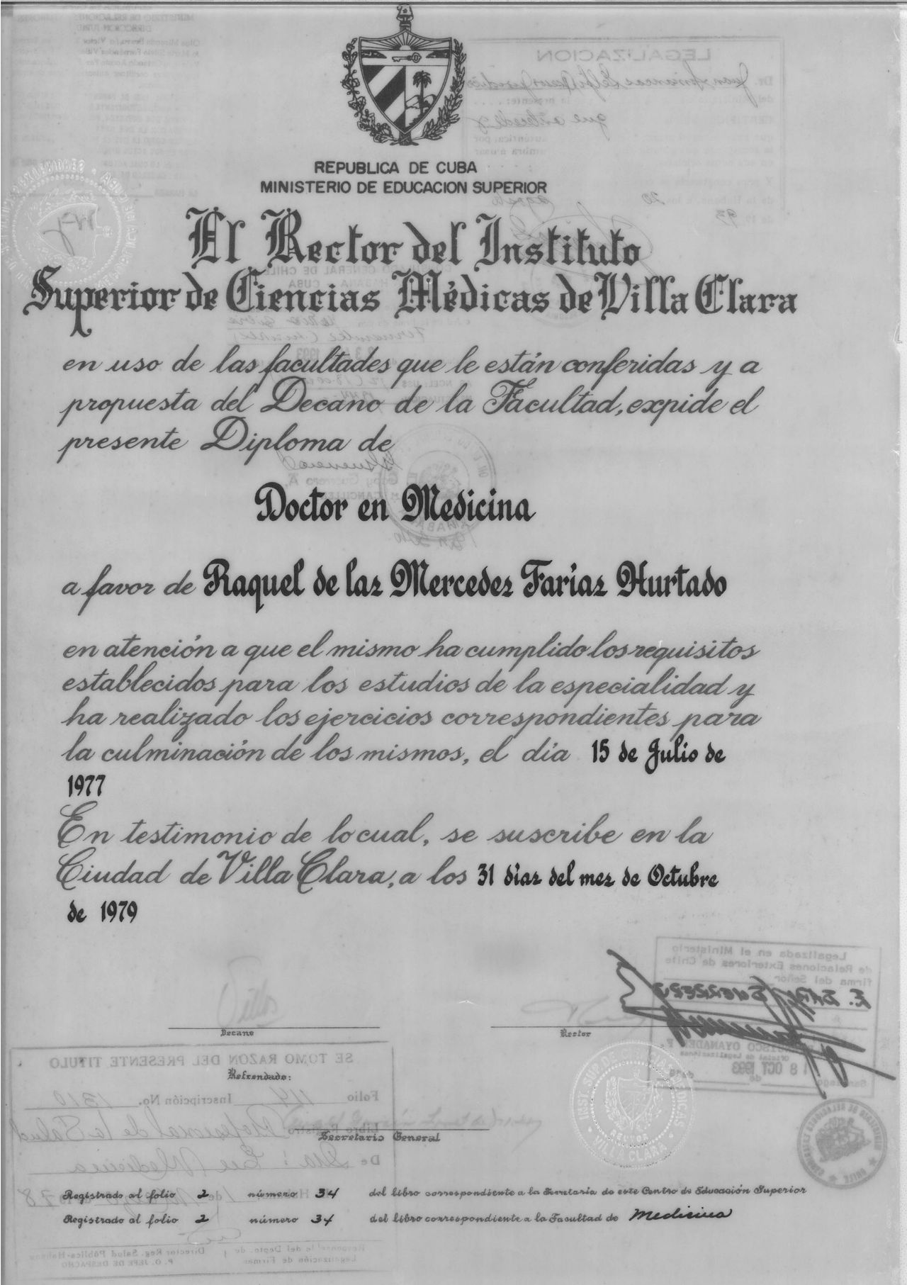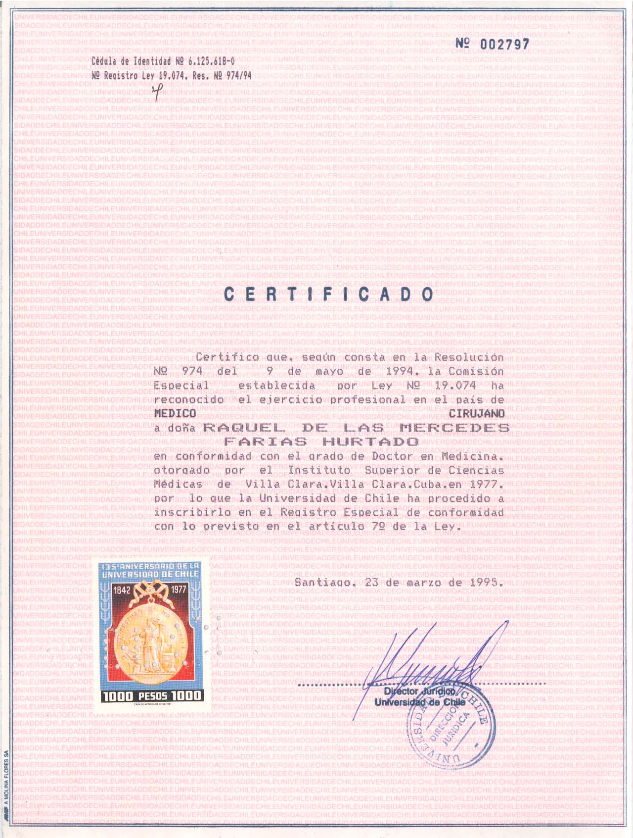 Soy la Dra. Raquel Farías Hurtado, chilena, Médico Cirujano formada y graduada en 1977 en la Facultad de Medicina de la Universidad de La Habana, Cuba, y Especialista en Dermatología y Venereología igualmente formada y graduada en Cuba en 1983. Cuento con más de 40 años de experiencia como dermatólogo en el diagnóstico, tratamiento y prevención de enfermedades de la piel, cabello y uñas.