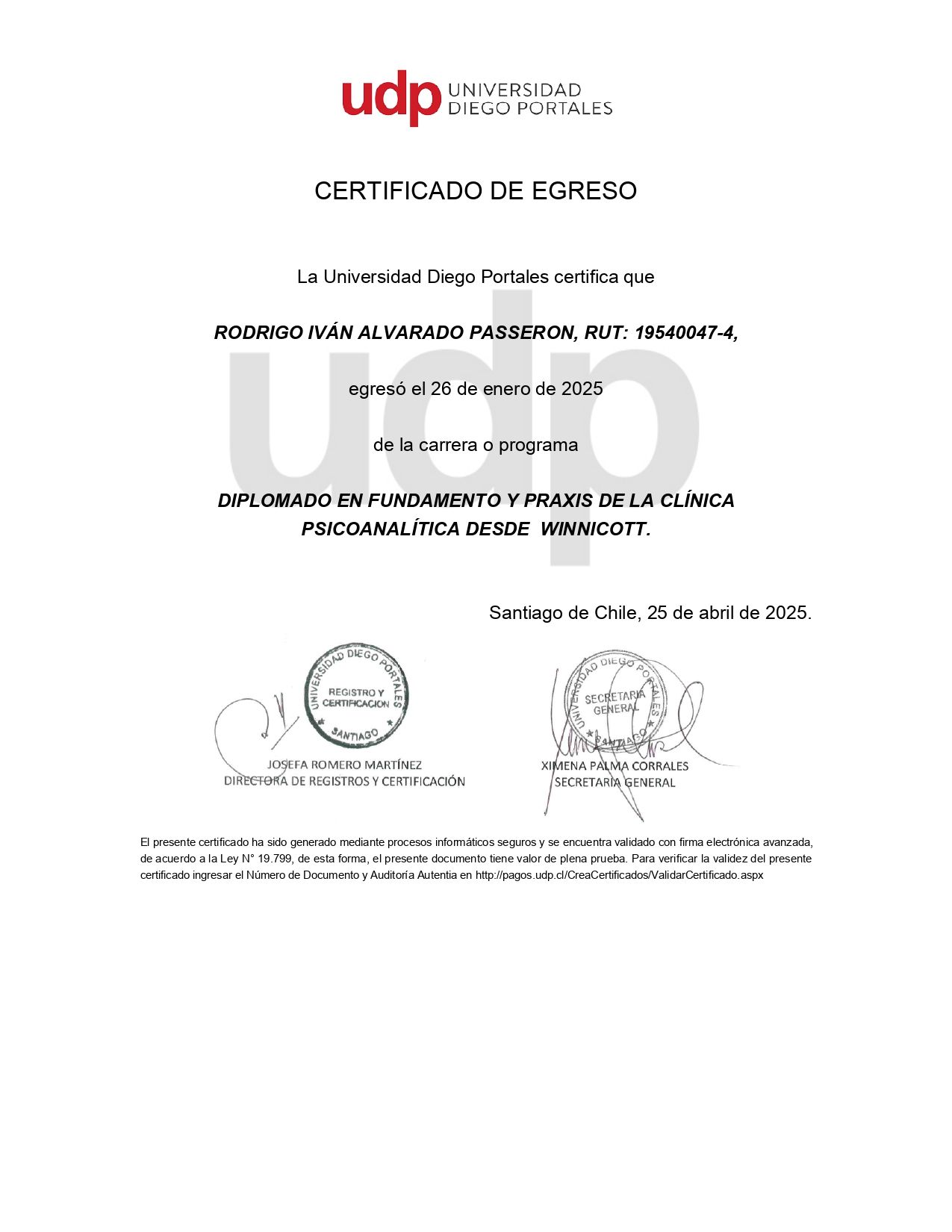 Cuento con un postgrado en clínica psicoanalítica desde la perspectiva de D. Winnicott.