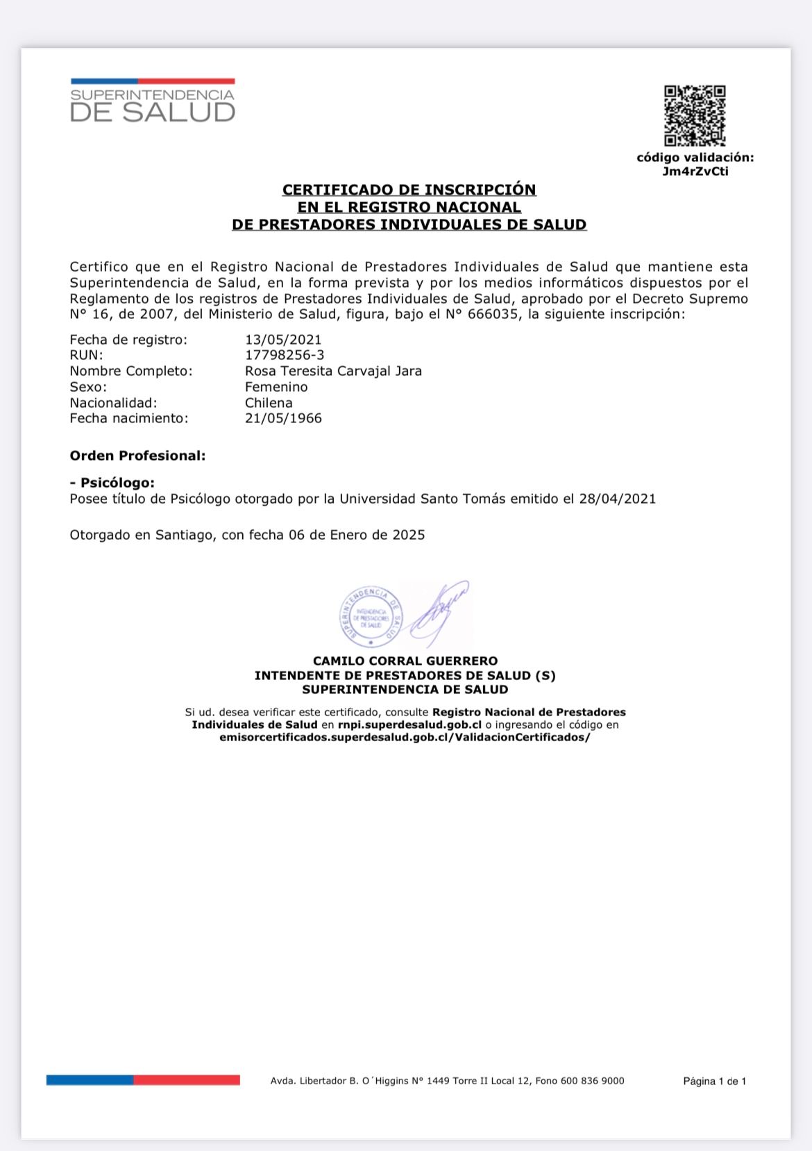 Estoy pasando un proceso muy difícil en mi vida, agradezco llegar con Rosa no solo por su empatía y cariño a lo que hace sino porque me explica como funciona mi cuerpo y mi cerebro y eso me alivia bastante. Siempre está pendiente de cómo estoy , viendo mis avances. Muchas gracias por aparecer en mi camino , sin duda no dudaría ni un minuto en acudir a usted .