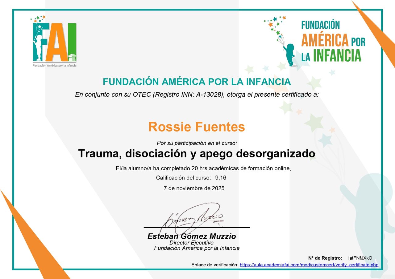 Rossie es una excelente profesional, muy atenta y cálida en su trato, quien transmite una genuina empatía e interés por aquello que te aqueja y a la vez es muy respetuosa del proceso personal que conlleva estar en terapia, lo cual también le agradezco mucho. Rossie ha facilitado potentes espacios de reflexión sobre mi misma, lo que me ha ayudado a profundizar en mi auto conocimiento y así poder activarme y enfrentar situaciones que hace mucho me estaban aquejando y no sabía muy bien que hacer con estas. Sin duda alguna la recomiendo al 100%.