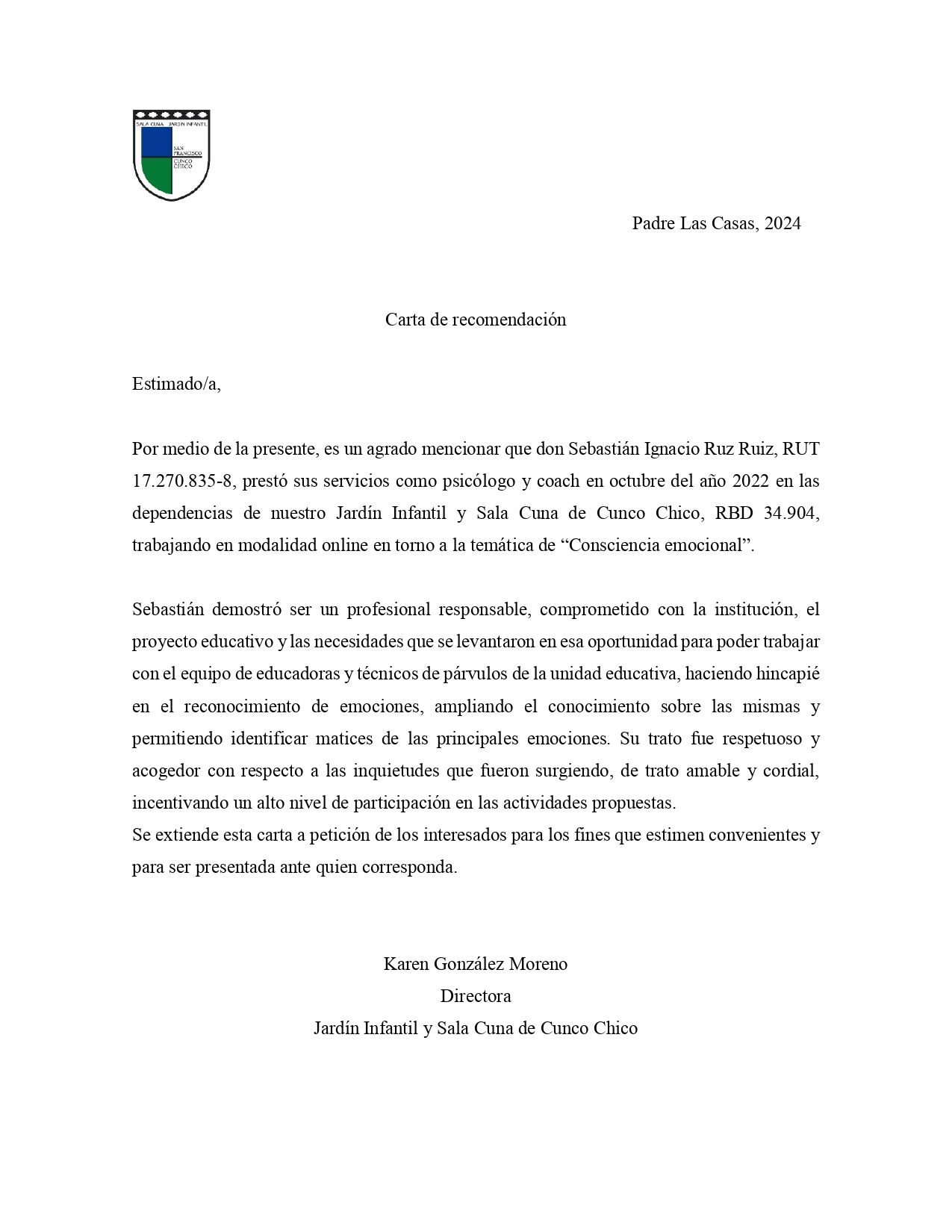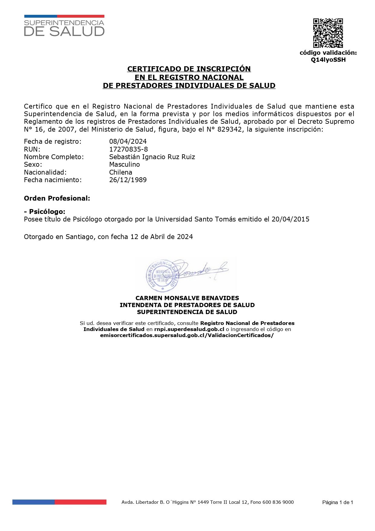 ¡Hola! Soy Sebastián Ruz Ruiz, psicólogo dedicado a tu bienestar emocional. Ofrezco terapia presencial y online para adultos (+18), parejas y familias. Mi experiencia abarca desde el estrés y la ansiedad hasta trastornos del ánimo, problemas de autoestima, duelos y síndromes psicosomáticos. También me especializo en TDAH, trastornos de la conducta y la personalidad, y manejo de violencia intrafamiliar. Mi formación en la Universidad Santo Tomás, Universidad Mayor y FLICH me permite brindarte un apoyo integral y profesional. Mi compromiso es acompañarte en tu camino hacia una vida más consciente.