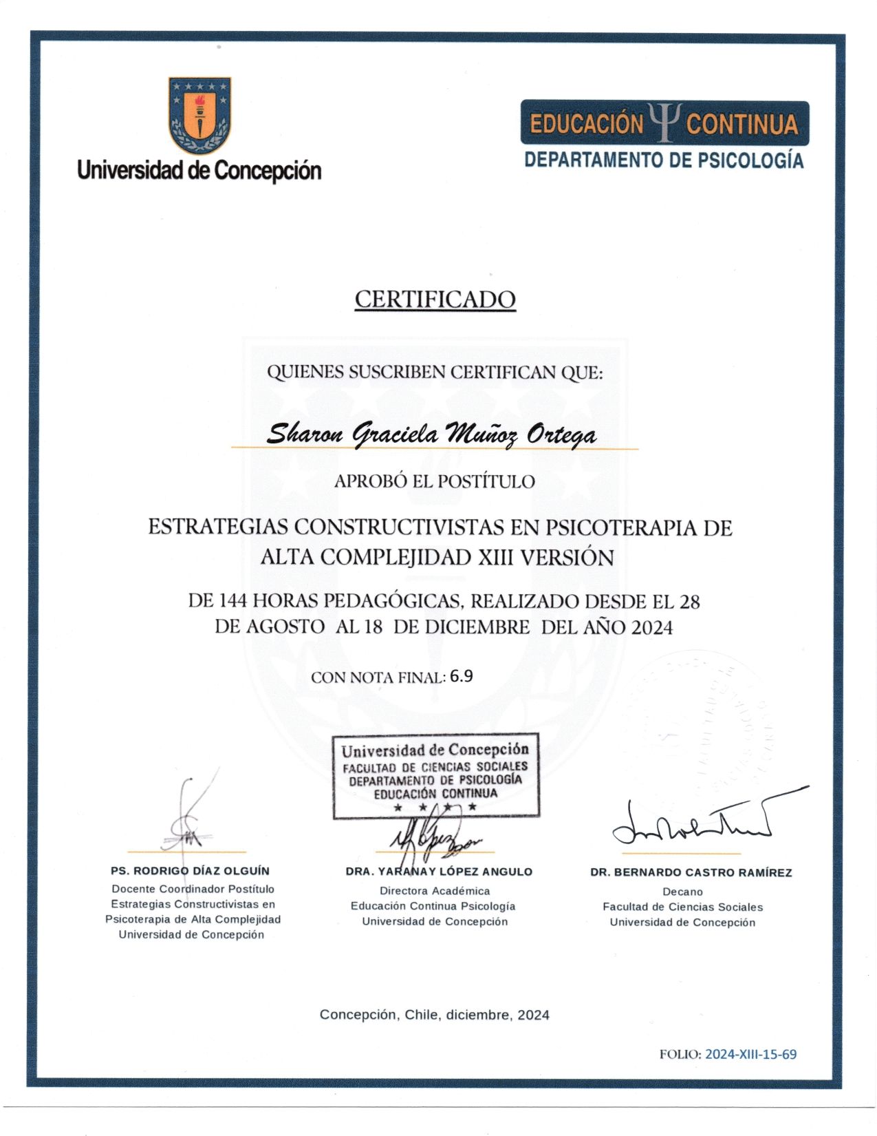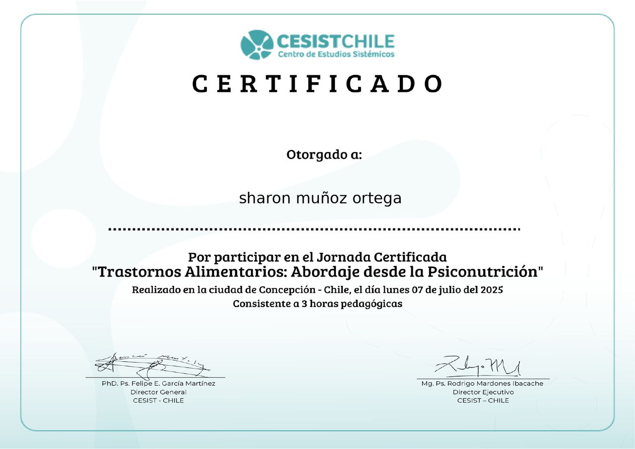 Mi nombre es Sharon Muñoz, soy psicóloga Clínica con formación en psicoterapia de alta complejidad por la Universidad de Concepción lo que me permite abordar distintos niveles de complejidad clínica desde una mirada comprensiva e integradora.