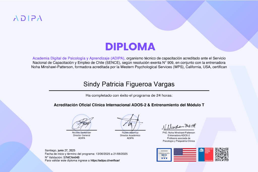 Quiero agradecer y felicitar a Sindy que ha acompañado a mi hermana menor durante este tiempo. Su profesionalismo, empatía y compromiso han sido fundamentales en el progreso que hemos visto en ella. Ha sido un gran apoyo, brindando no solo herramientas útiles, sino también un espacio seguro para su desarrollo personal. Estamos muy agradecidos por la ayuda y dedicación entregadas. Totalmente recomendada!!!