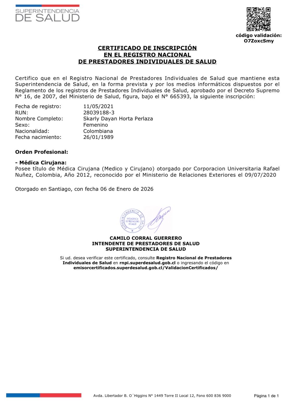 Núm. Colegiado: 665393 ``Especialidad no registrada``