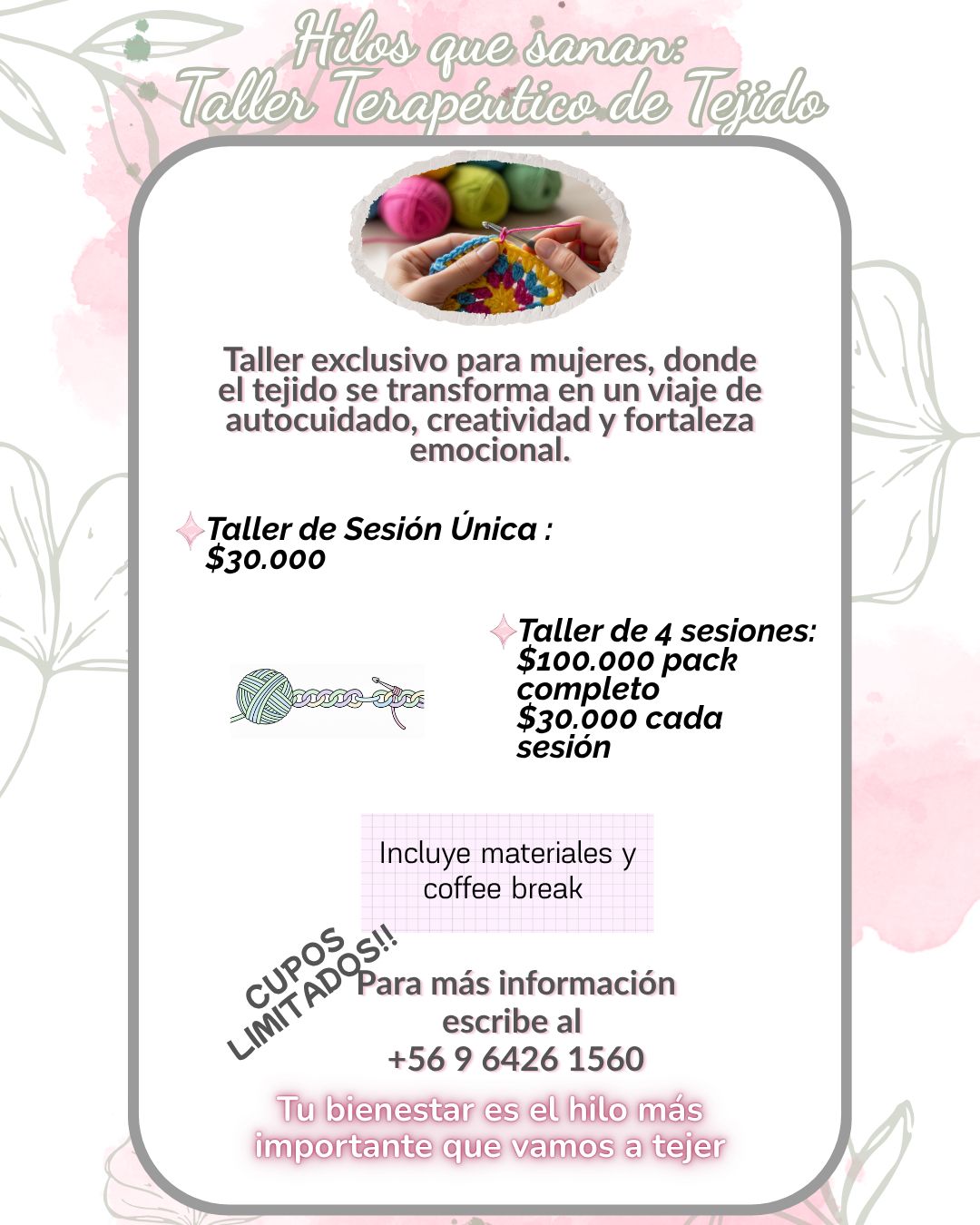 Como terapeuta, considero indispensable el poder sintonizar afectivamente con el dolor emocional de quien recurre al espacio por ayuda, y ante ello acojo con responsabilidad, empatía y respeto cada una de sus vivencias, lo que puedo señalar, ha permitido que los pacientes logren establecer un buen vínculo terapéutico, al visualizar la disponibilidad que se ofrece ante sus necesidades afectivas, y con ello, avanzar favorablemente hacia el camino del bienestar y la superación del dolor psíquico.