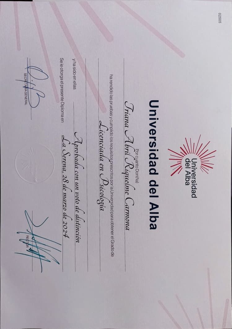 ¡Hola! Mi nombre es Triana, soy psicóloga especializada en clínica infanto-juvenil y clínica adulta. Trabajo desde un enfoque integrativo, utilizando Terapia Cognitivo-Conductual, Arteterapia, Terapia Sistémica y Terapia Humanista. Cuento con 3 años de experiencia trabajando con adultos, niños, niñas y adolescentes.