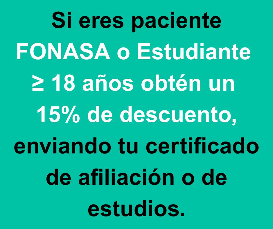 DESCUENTO 15% FONASA O ESTUDIANTE ≥ A 18 AÑOS.