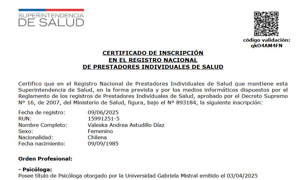 Valeska, es una Excelente psicóloga / Terapeuta, se nota que es su vocación, sin duda una muy buena profesional.