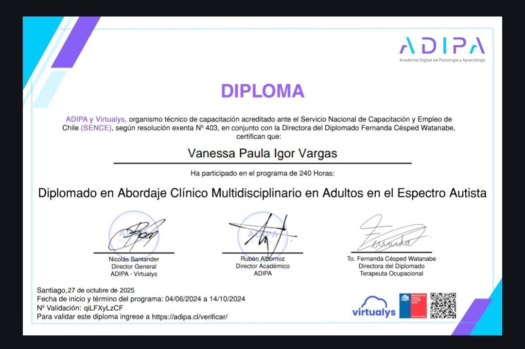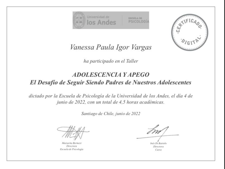 He tenido la oportunidad de conocer a Vanessa tanto como profesora y psicóloga. Me hace sentir muy cómoda y en confianza en casa encuentro. Su manera de ser y profesionalismo superan mis expectativas! La recomiendo.