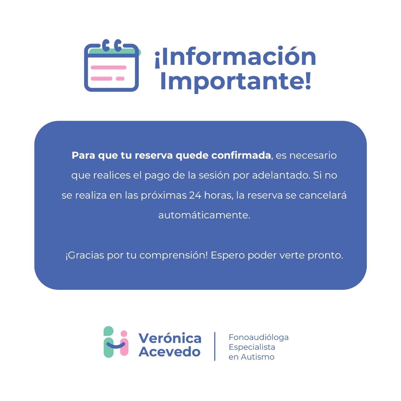 Soy Verónica, fonoaudióloga especialista en autismo, diplomada en Neuropsicología Infantil, con más de 10 años de experiencia en el trabajo con niñas y niños con trastorno del desarrollo del lenguaje, trastornos de sonidos del habla, selectividad alimentaria, síndrome de down, apraxia del habla infantil, selectividad alimentaria. Cuento con certificación en la aplicación de ADOS-2 y ADI-R. Realizo atenciones en mi consulta en la comuna de Ñuñoa, sesiones online y a domicilio. Mi tarea es ayudarte a que tu hijo pueda comunicarse contigo y su entorno. Pero sobre todo entregarte estrategias respetuosas basadas en la empatía, juego y motivación de tu hijo o hija, asegurándonos que la instancia de terapia sea una situación de disfrute y aprendizaje, esto hará que nos lleve a generar los cambios que tanto anhelamos.