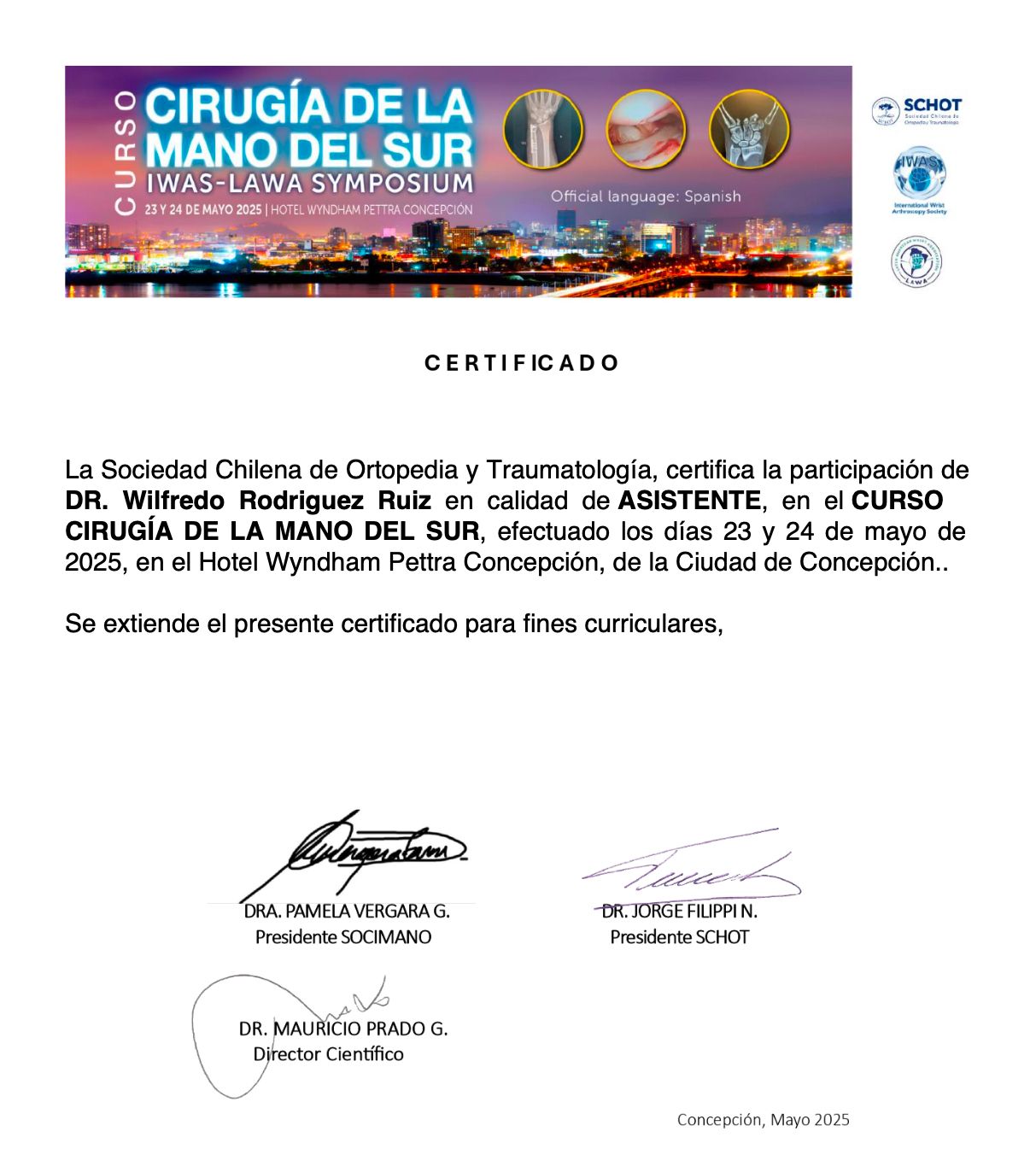 Soy el Dr. Wilfredo Rodríguez Ruiz, Médico cirujano, formo parte del equipo Traumatología y Ortopedia, Unidad de Cirugía de Mano y Microcirugía del Hospital San Pablo de Coquimbo.