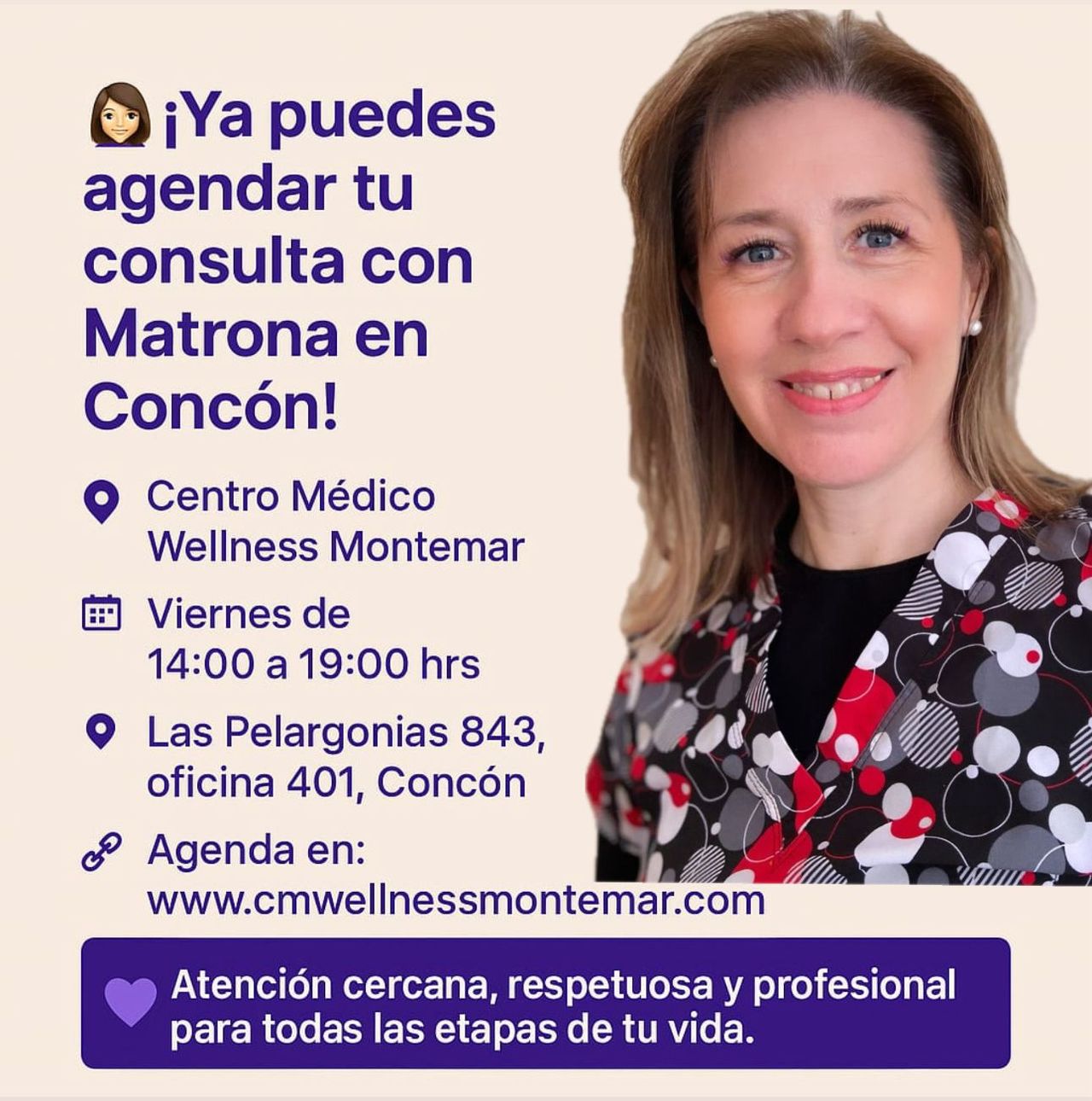 ¡Hola! Soy Ximena Castro Díaz, matrona apasionada por la salud y bienestar de las mujeres en todas las etapas de su vida. Mi compromiso es brindar una atención cálida, profesional y basada en la evidencia, acompañando a cada paciente con empatía y dedicación. Mi enfoque se centra en ofrecer un espacio seguro y de confianza, donde puedas resolver tus dudas, recibir orientación y acceder a cuidados personalizados según tus necesidades. Si buscas una atención integral y cercana estaré encantada de acompañarte en este camino.